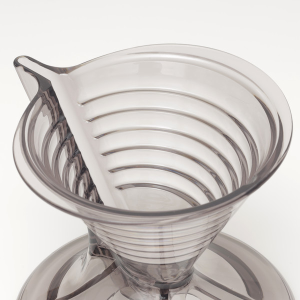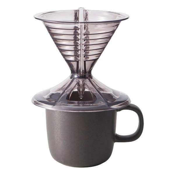 らせんスロープ状のドリッパーはコーヒーがゆっくり回りながら流れるので、お湯を中心に注いであげるだけでプロの味を楽しめます。のぞき窓がついていて、コーヒーがカップに注がれた量が確認できます。