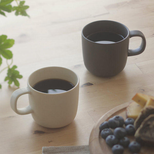あたたかみのある美濃焼のマグカップ。目安ラインがあり、一杯分のコーヒー粉12gに適した抽出量(130ml)がひとめでわかります。