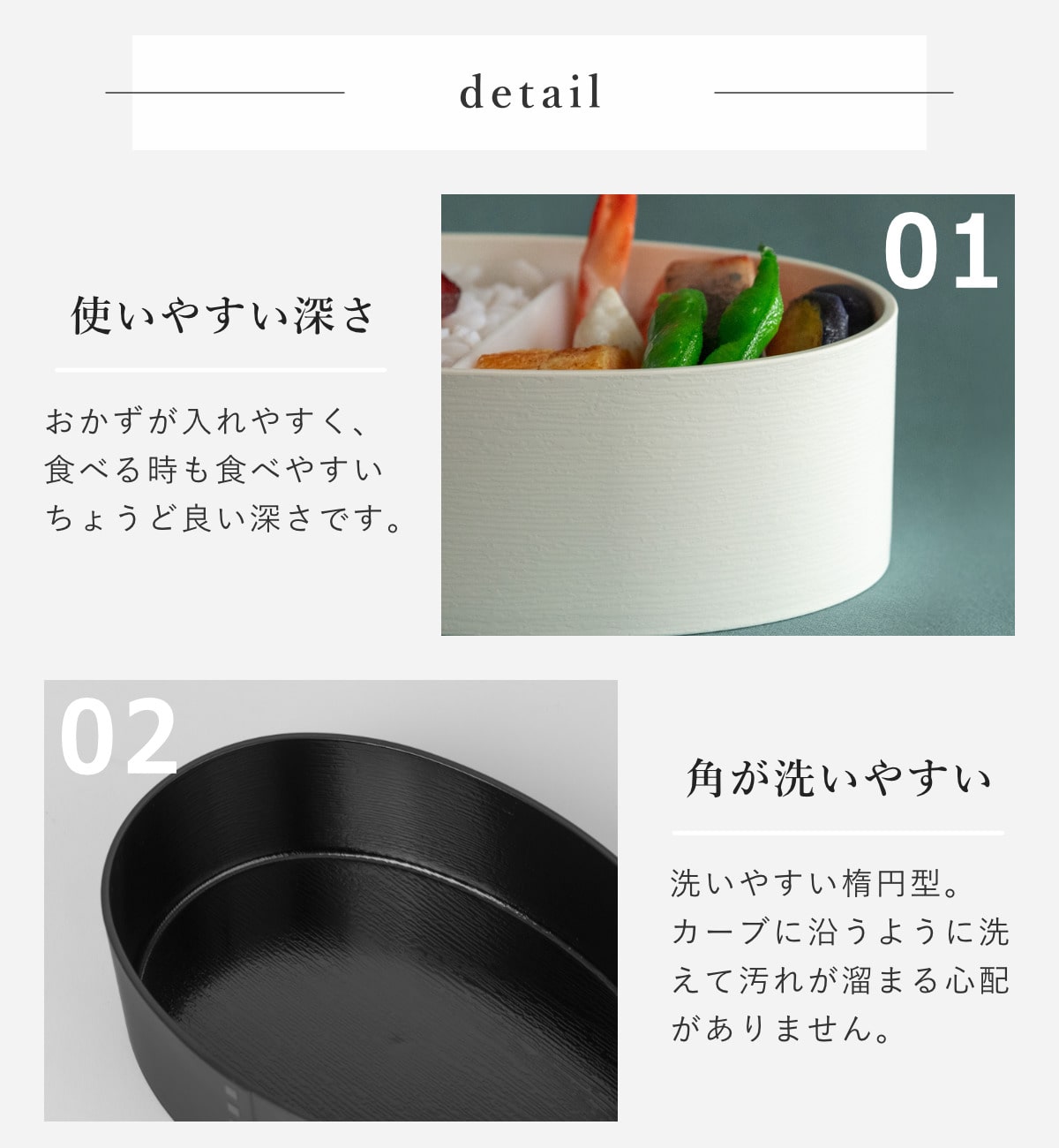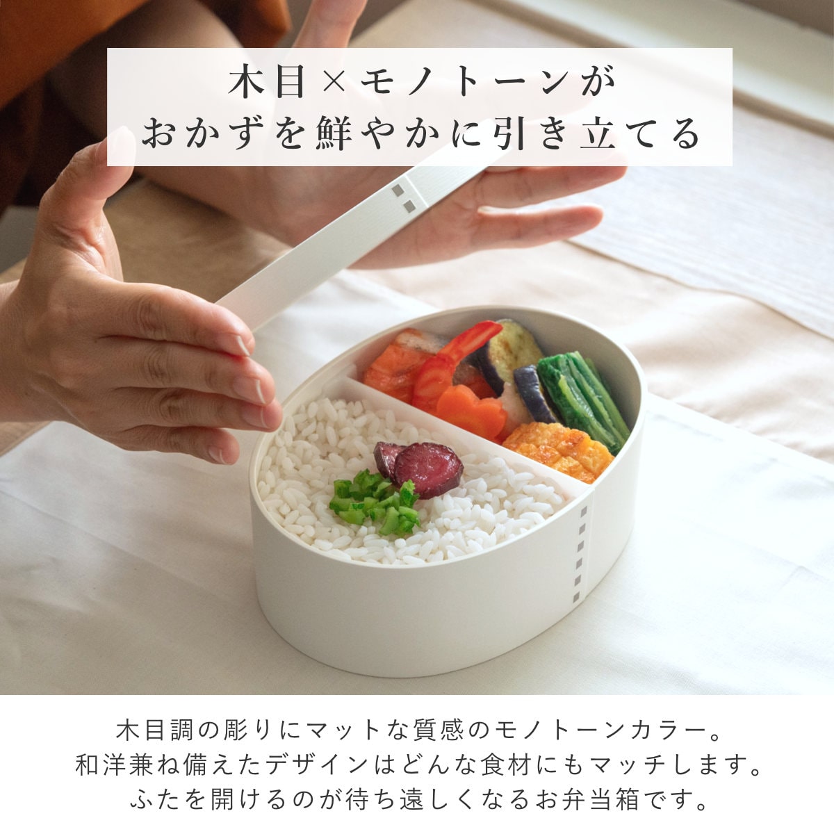 毎日使うお弁当箱はなによりも使いやすさが大切。曲げわっぱを樹脂製にすることで、日々の暮らしに寄り添う使いやすさを実現しました。