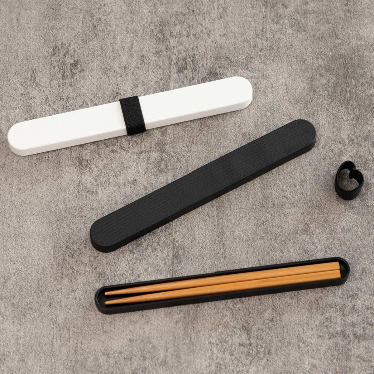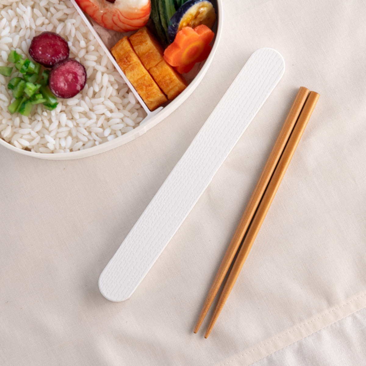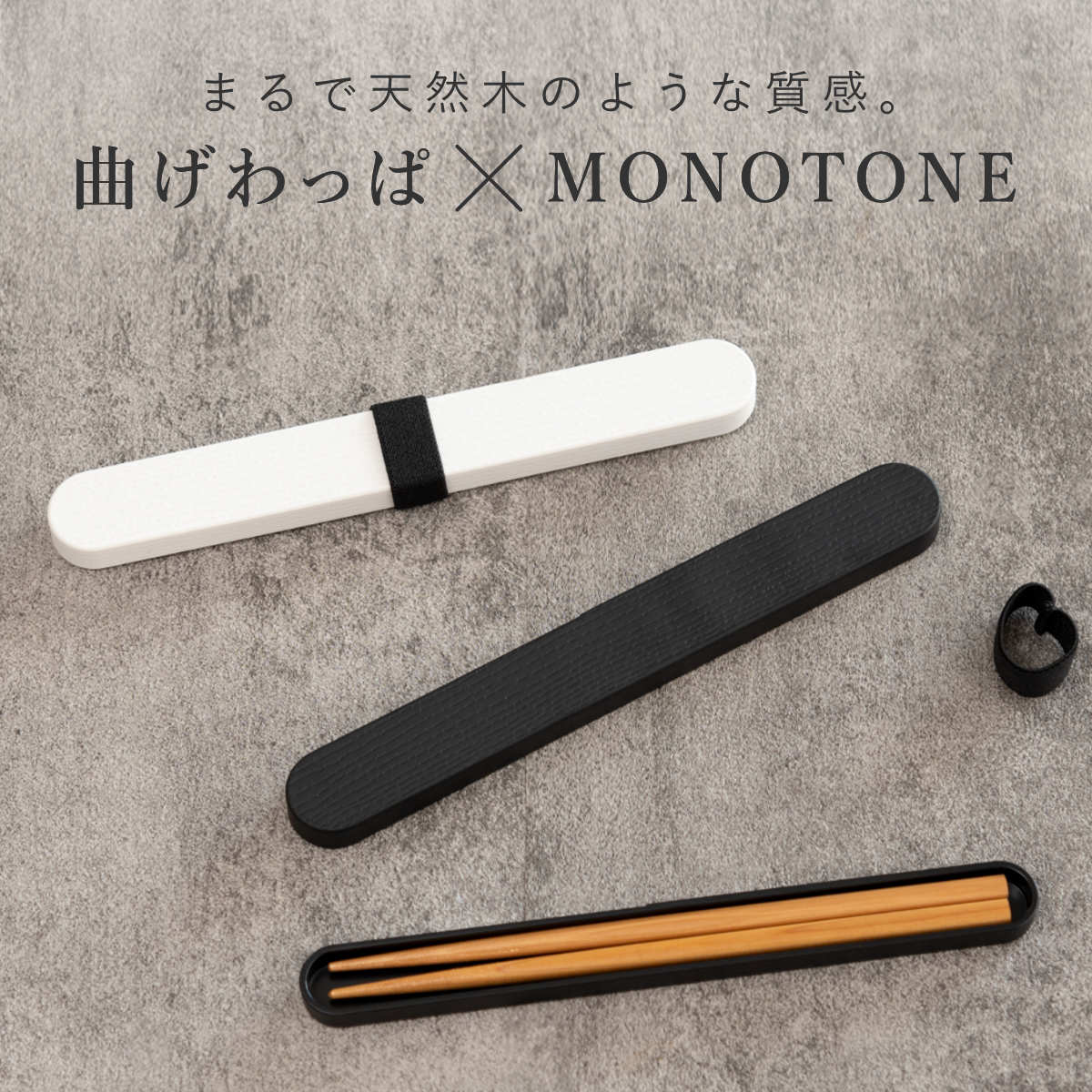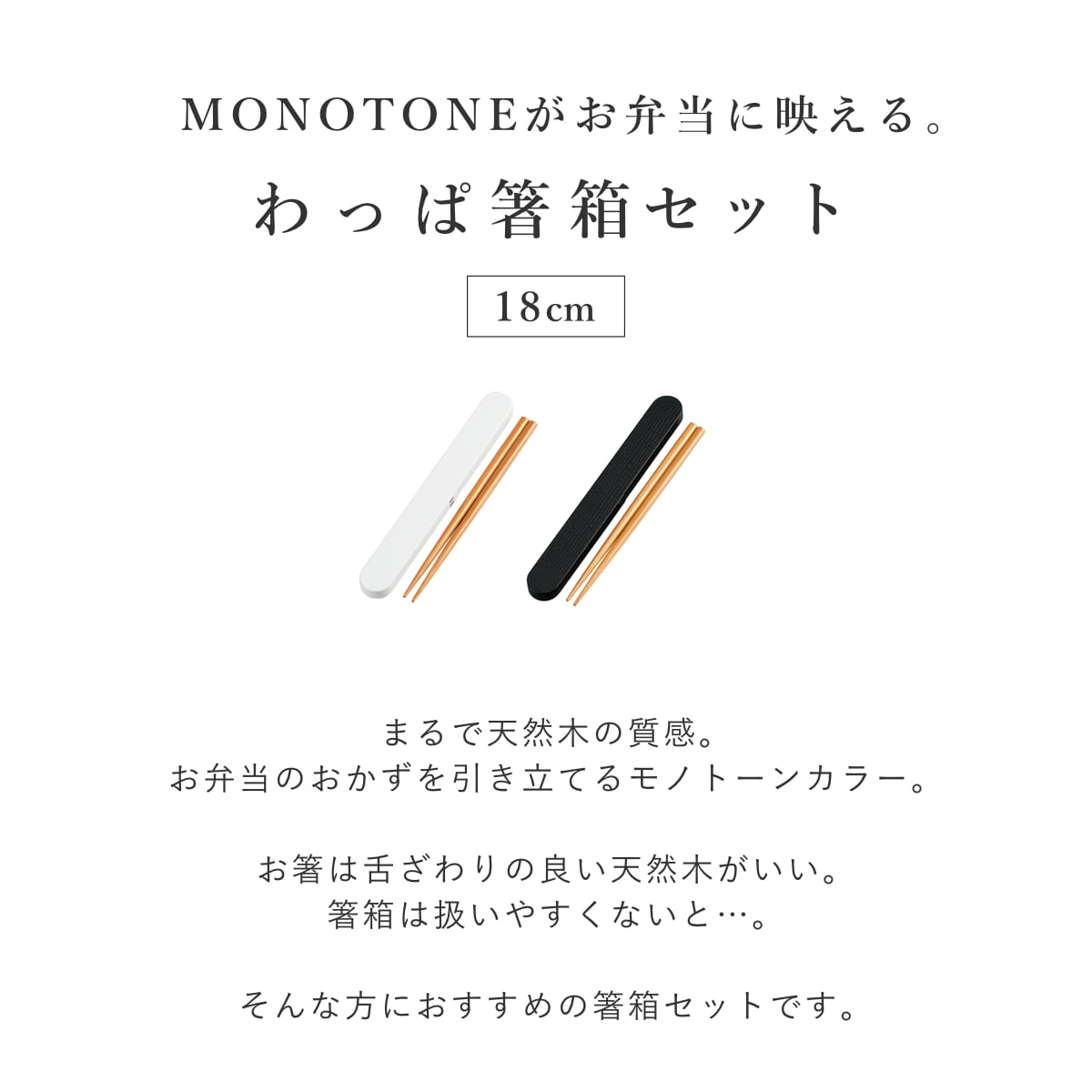 わっぱ風の箸箱と天然木を使用した箸がセットになった箸箱セットです。箸箱は木目調の質感がリアルに表現されて、飽きのこない和風な雰囲気が魅力です。モノトーンでスタイリッシュなカラーは男女問わずお使いいただけます。