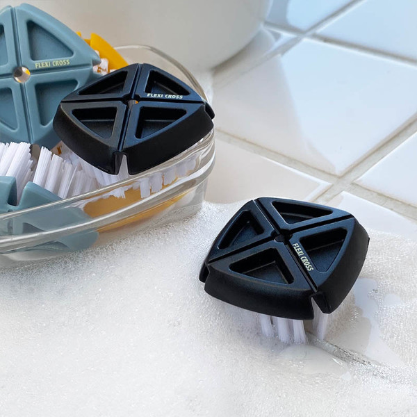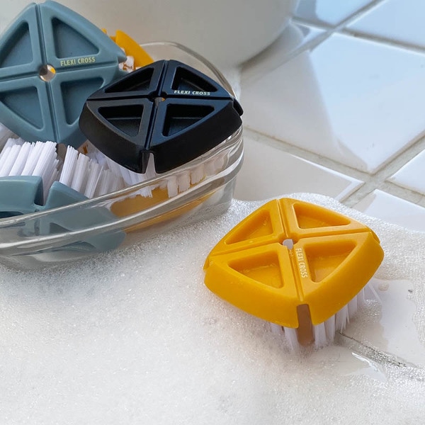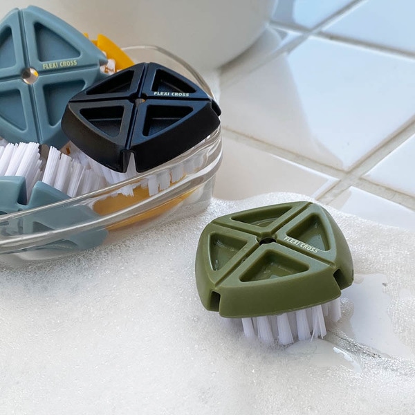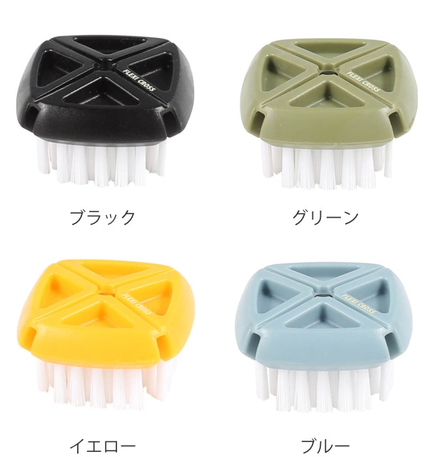 クロス状に内側にブラシを寄せることができる仕組みになっており、隅々まで汚れを落とすことができます。クロスに溝があるので、水切れがよく速乾性があります。マットな風合いが魅力的な4カラー、2サイズの展開からお選びいただけます。