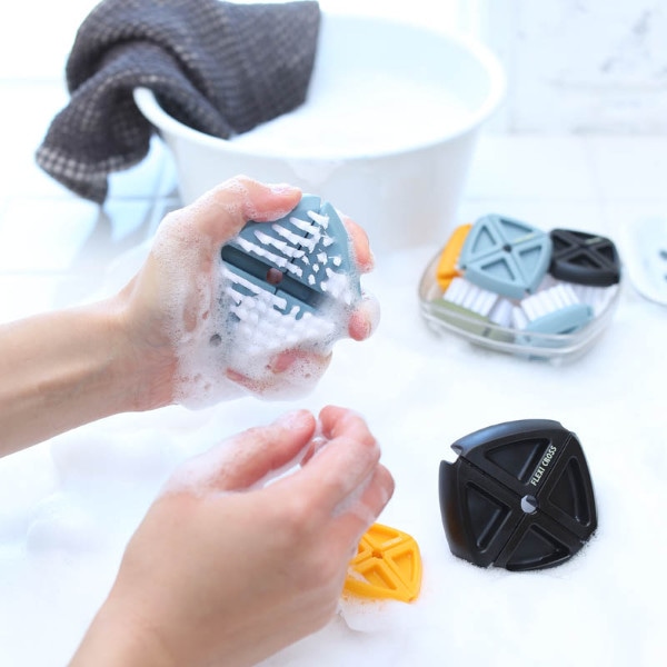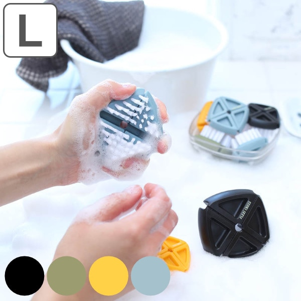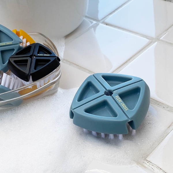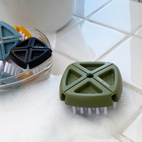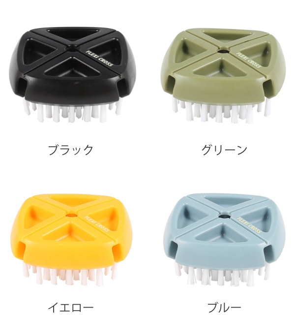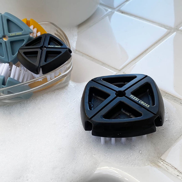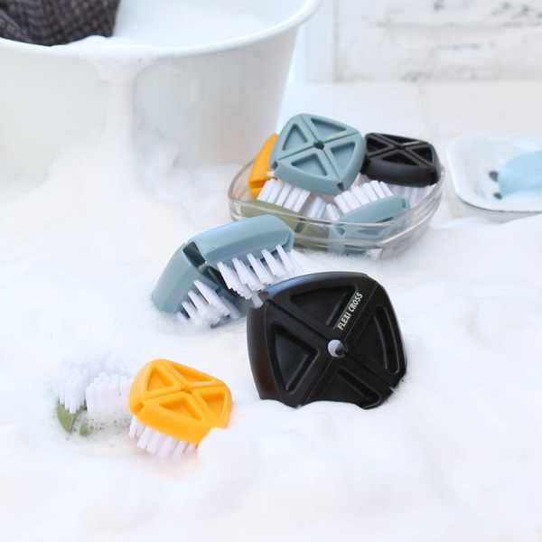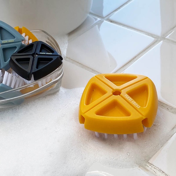 クロス状に内側にブラシを寄せることができる仕組みになっており、隅々まで汚れを落とすことができます。クロスに溝があるので、水切れがよく速乾性があります。マットな風合いが魅力的な4カラー、2サイズの展開からお選びいただけます。