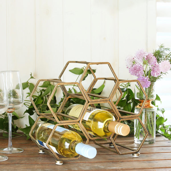 六角形の重なったハニカム構造で、省スペースながら6本のワインボトルを収納できます。