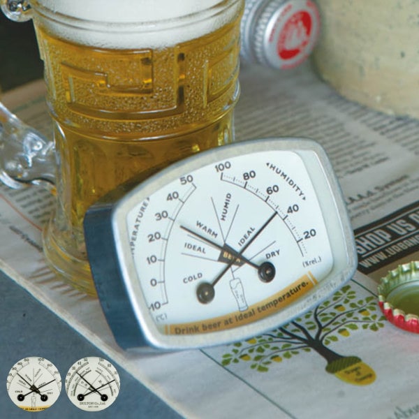 クールなスチール素材と、遊び心が散りばめられた文字盤がマッチした温湿度計です。お部屋の温度と湿度を視覚化することで、快適な環境を作ることが出来ます。ちょっとしたギフトにもオススメです。