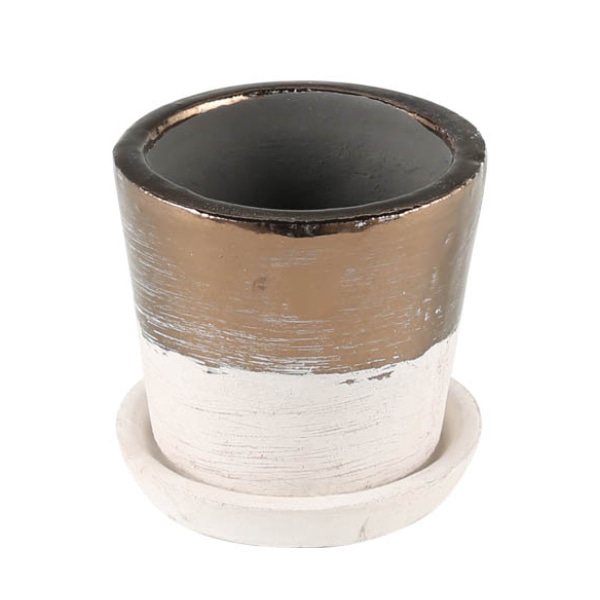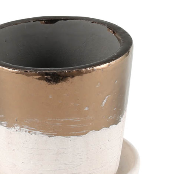 定番のテラコッタ素材を生かしたベーシックな色と、華やかなブロンズのツートンカラーが魅力のポットです。ハンドメイドで一点一点異なる風合いも魅力の一つです。お好みの植物を植えてあなたのグリーンライフをお楽しみください。