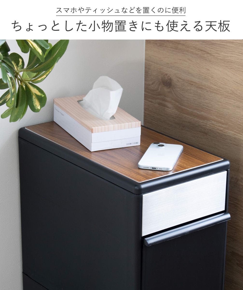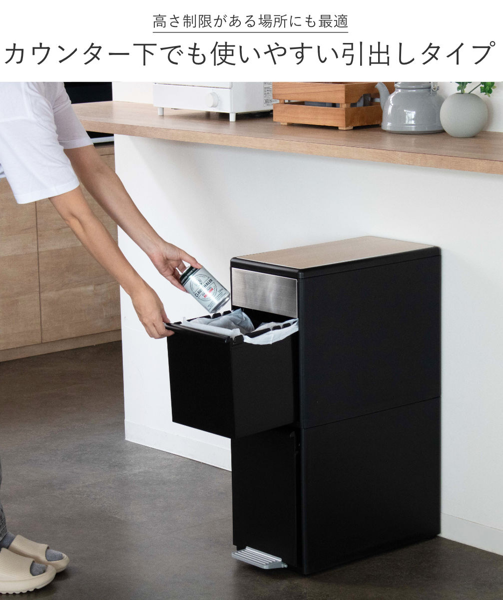 ふたの高さがでない引き出しタイプなので、高さ制限があるカウンター下やラック下などでもお使いいただけます。