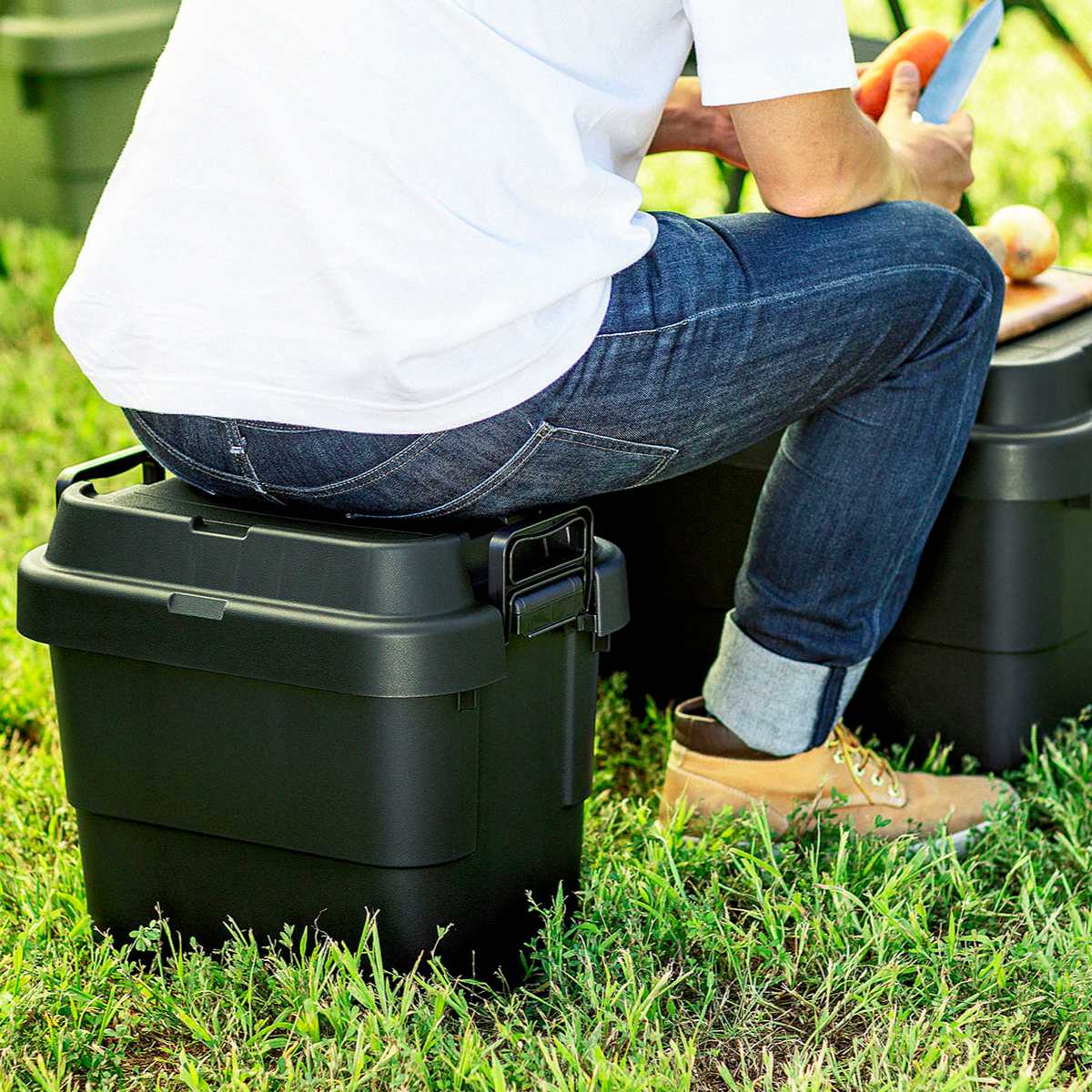 耐荷重100kgの頑丈さが特徴の『トランクカーゴ』は、「座れる」「しまえる」「積み重ねられる」「持ち運べる」の多機能なフタ付き収納ボックスです。無骨でシンプルなデザインで、屋外・屋内問わずに様々なシーンで活躍してくれる万能収納アイテムです。