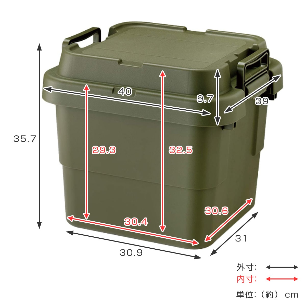 | サイズ | 外寸:約 幅40×奥行39×高さ35.7(cm) 内寸:約 幅30.4×奥行30.6×高さ29.3(cm) |