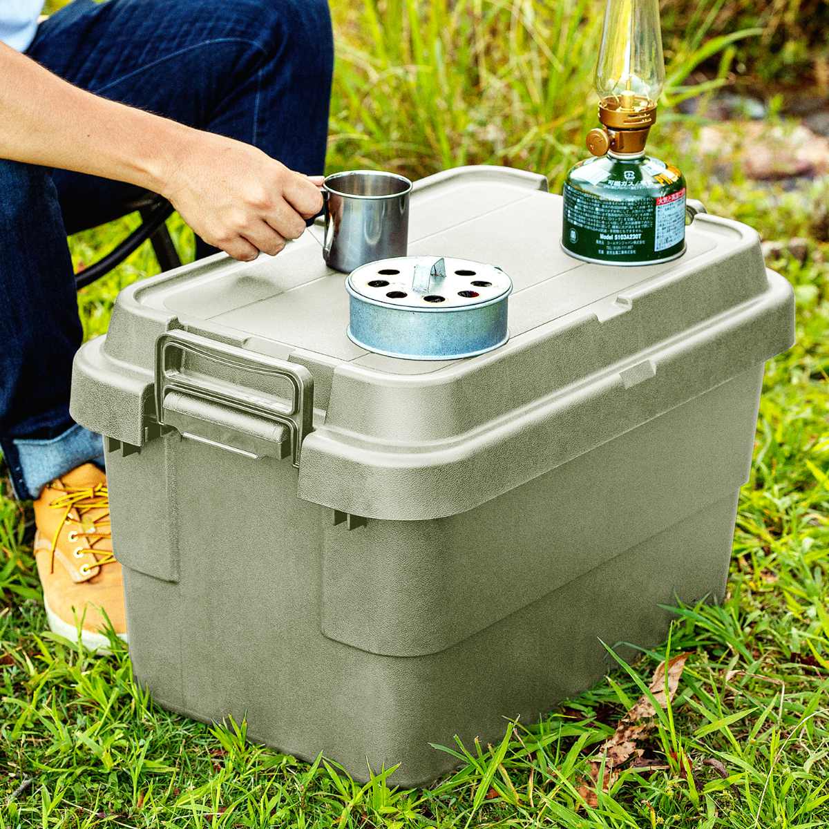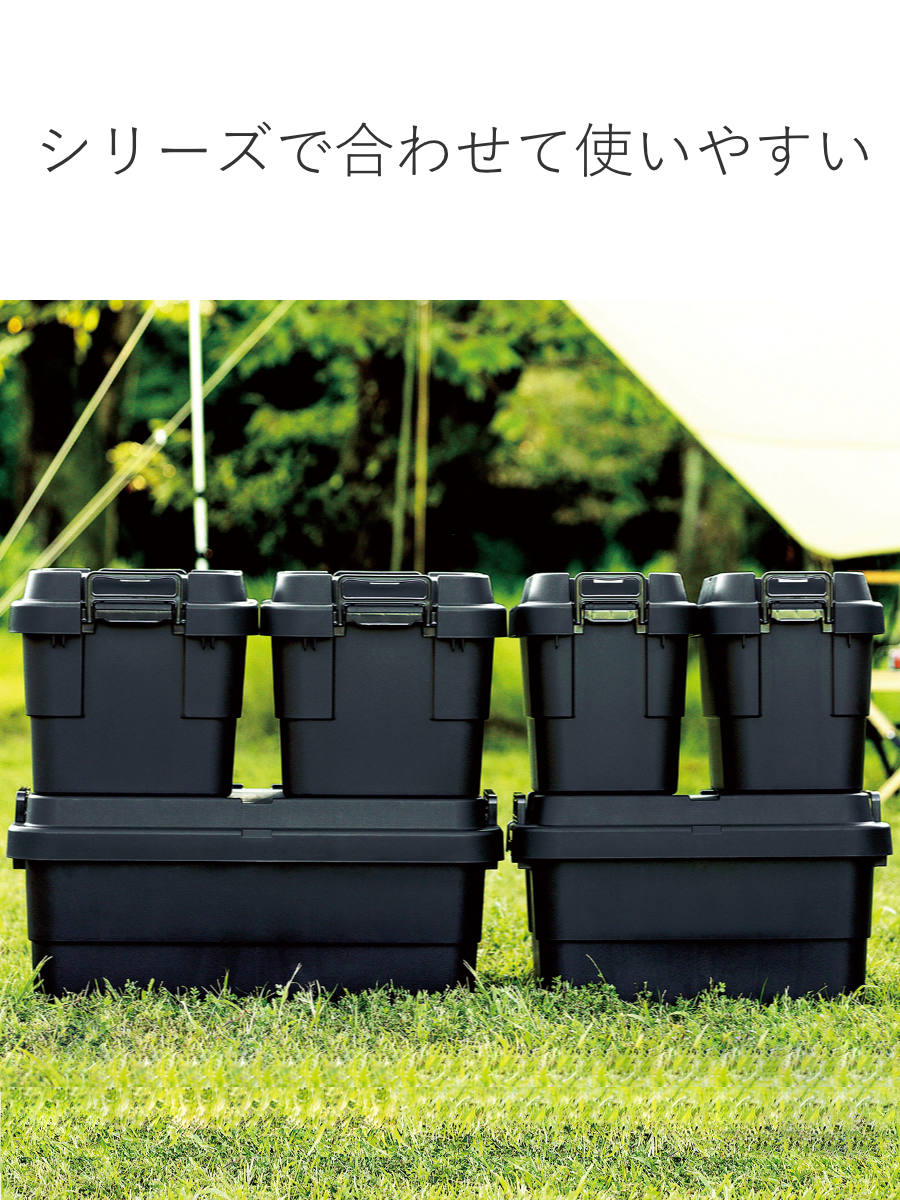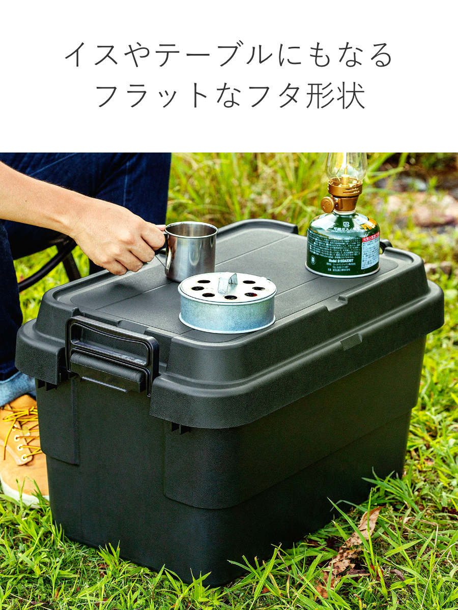 耐荷重100kgの頑丈さが特徴の『トランクカーゴ』は、「座れる」「しまえる」「積み重ねられる」「持ち運べる」の多機能なフタ付き収納ボックスです。無骨でシンプルなデザインで、屋外・屋内問わずに様々なシーンで活躍してくれる万能収納アイテムです。
