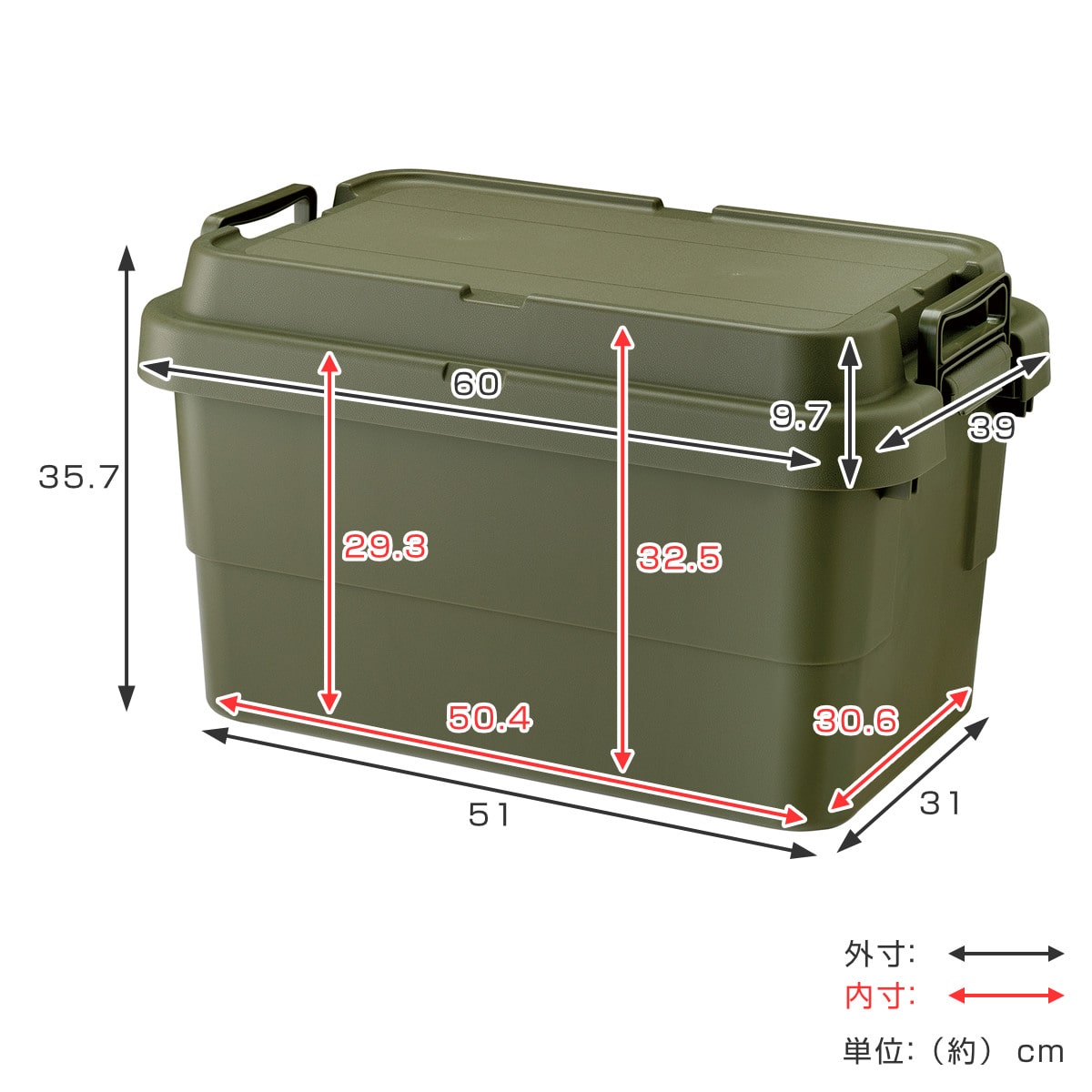 | サイズ | 外寸:約 幅60×奥行39×高さ35.7(cm) 内寸:約 幅50.4×奥行30.6×高さ29.3(cm) |