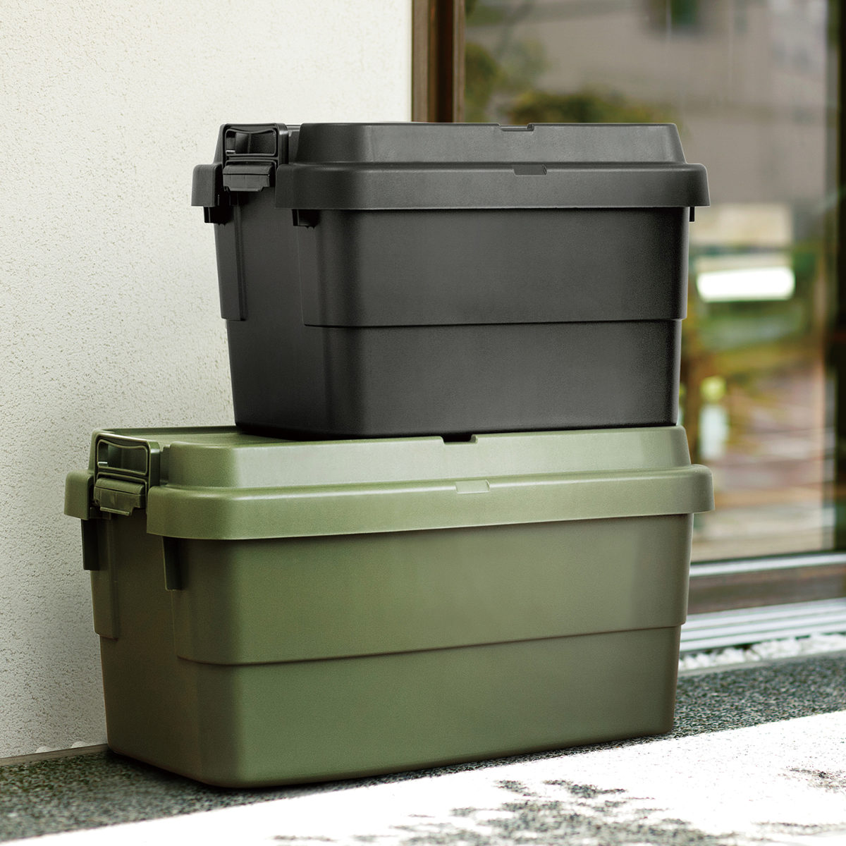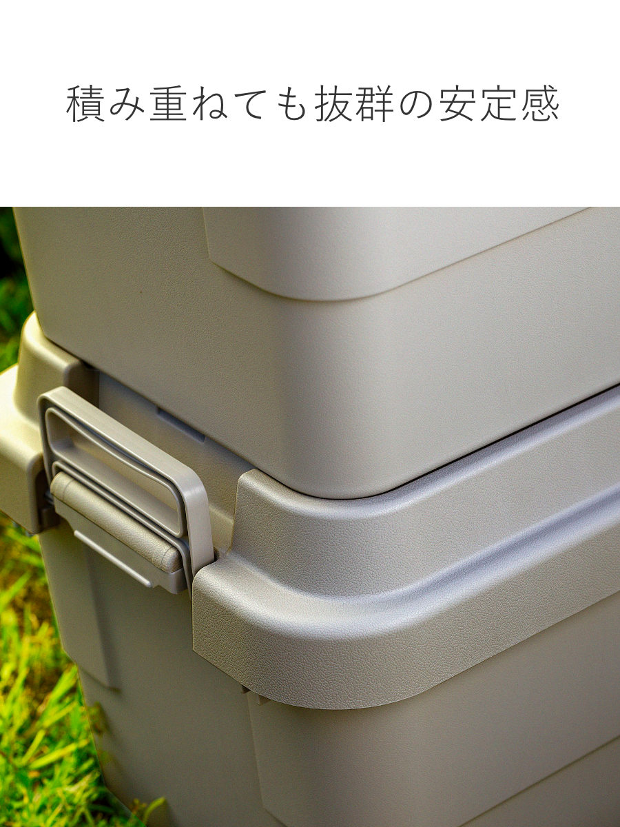 耐荷重100kgの頑丈さが特徴の『トランクカーゴ』は、「座れる」「しまえる」「積み重ねられる」「持ち運べる」の多機能なフタ付き収納ボックスです。無骨でシンプルなデザインで、屋外・屋内問わずに様々なシーンで活躍してくれる万能収納アイテムです。