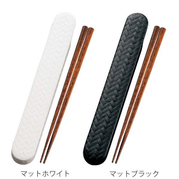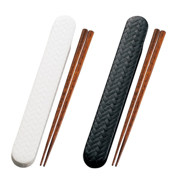 ケース本体にあじろ模様が施されたモノトーンの箸・箸箱セットです。マットな質感で落ち着いたデザインが都会的な印象を与えてくれます。シンプルなデザインなので性別や年齢問わず、大人からお子様までどなたでもにお使いいただけます。