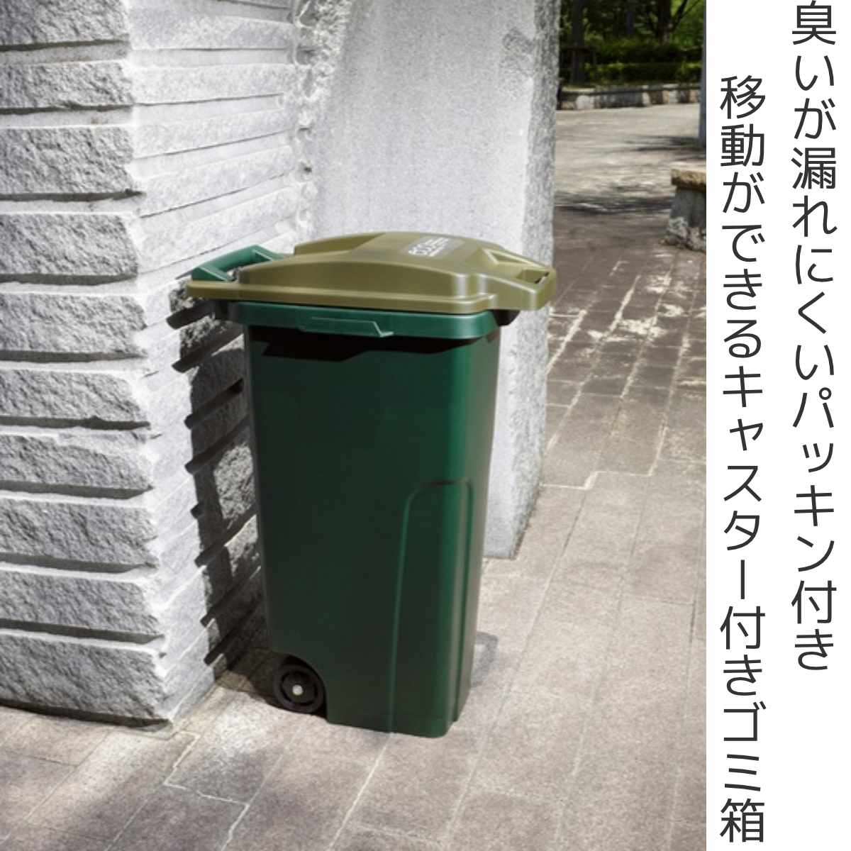 移動に便利なキャスター付き屋外用ゴミ箱です。大きなゴミを捨てる際も、収集場所まで楽に移動させる事ができます。