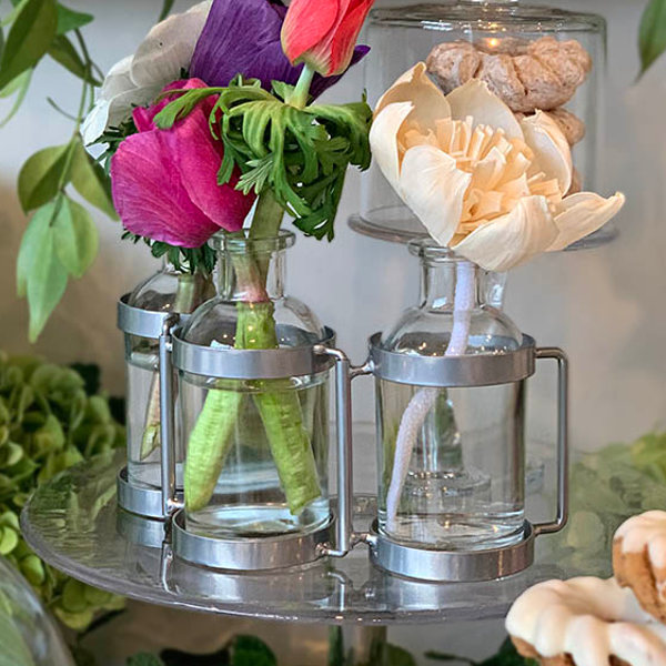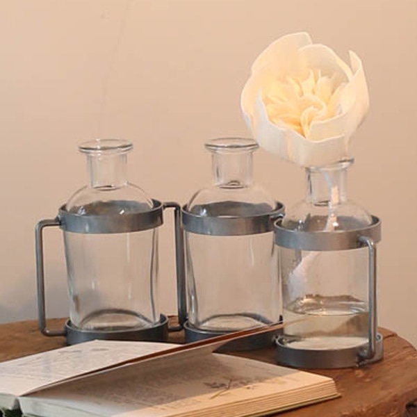 ボトル3本連結したアロマディフューザーです。フレグランスオイルの入ったボトルが1本と、空のガラスボトルが連結しています。オイルが入ったボトルのフタを開け、付属のソラフラワーを入れてご使用ください。空のガラスボトルには、生花やドライフラワーを入れて花瓶にしても。花も香りも楽しみたい、そんな贅沢を叶えるアロマディフューザーです。