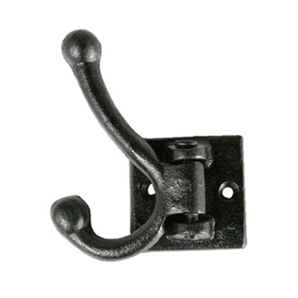 左右にフックがスイングするので、バッグやコート、帽子などが掛けやすくて便利です。アイアン製ならではの程よい重厚感とアンティークの風合いが、お部屋の雰囲気をランクアップ。カフェや雑貨店などお店の飾りにしてもおすすめのアイテムです。2か所のネジ穴で壁に取り付けることができます。