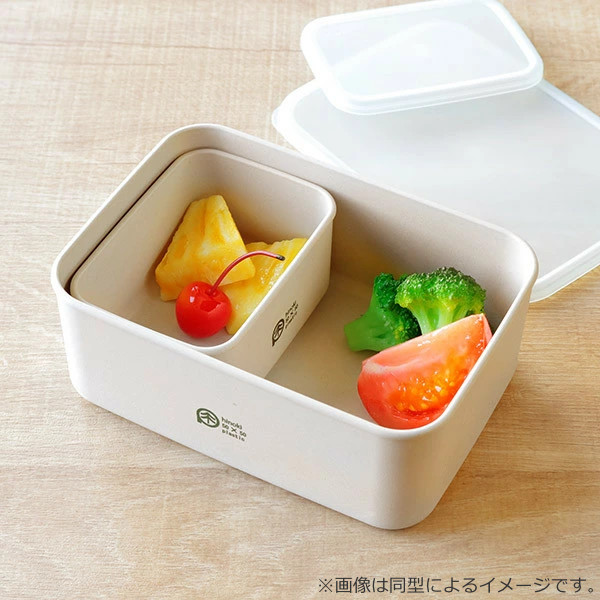 LサイズとSサイズを使って中子付きお弁当箱に変身長方形Lサイズには長方形Sサイズがスッポリはまります。お弁当箱の中子としてもお使いただけるので、フルーツとサラダを入れたり、おかずと主食を入れた時に味が混ざることを防ぎます。