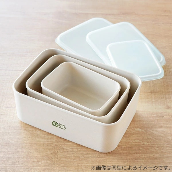 長方形Lサイズには長方形Sサイズがスッポリはまります。お弁当箱の中子としてもお使いただけるので、フルーツとサラダを入れたり、おかずと主食を入れた時に味が混ざることを防ぎます。