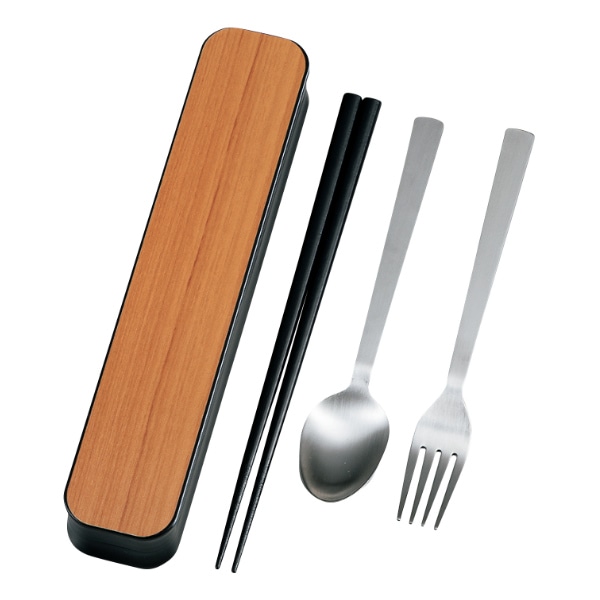 木の温もりあふれる木目調のトリオセットです。飽きのこないシンプルなデザインで、どんなお弁当箱にも合わせやすく、男女問わずお使いいただけます。食洗機対応なのでお手入れも簡単です。