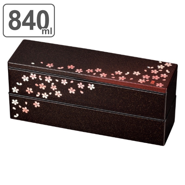 和風なお弁当箱です。容量は840mlと男性の方に満足していただけるサイズです。二段式で、おかずとご飯を分けて入れることができます。仕切りは取り外し可能です。