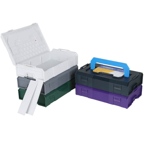 中の仕切りが取り外し可能なので、工具入れ、救急箱、文房具入れなど、用途に合わせてお使いいただけます。