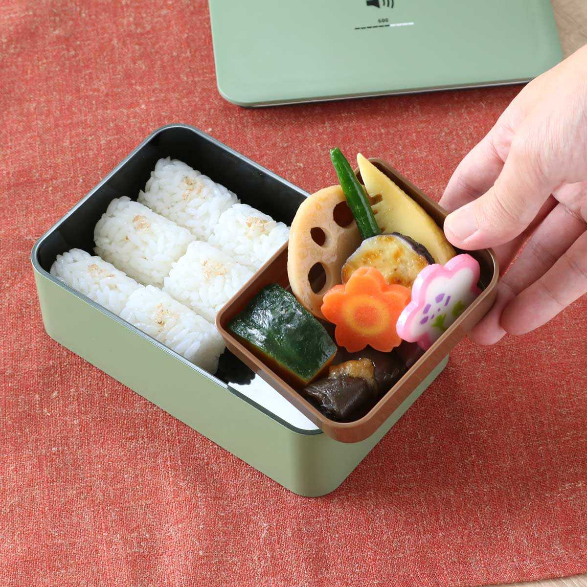 中子が付属しているので、ご飯とおかずを分けて入れることができます。少し汁気のあるおかずも中子に入れればご飯に汁が付くことなく安心です。中子は取り外しできるので、オムライスやサンドイッチなどのメニューにも対応できます。