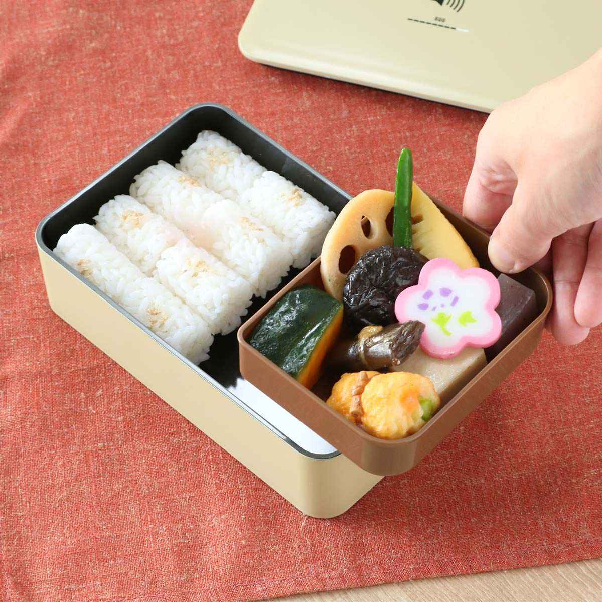 中子が付属しているのでご飯とおかずを分けて入れることができます。少し汁気のあるおかずも中子に入れればご飯に汁が付くことなく安心です。中子は取り外しできるので、オムライスやサンドイッチなどのメニューにも対応できます。