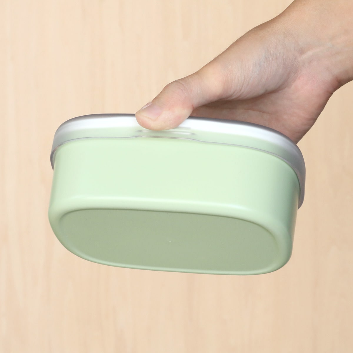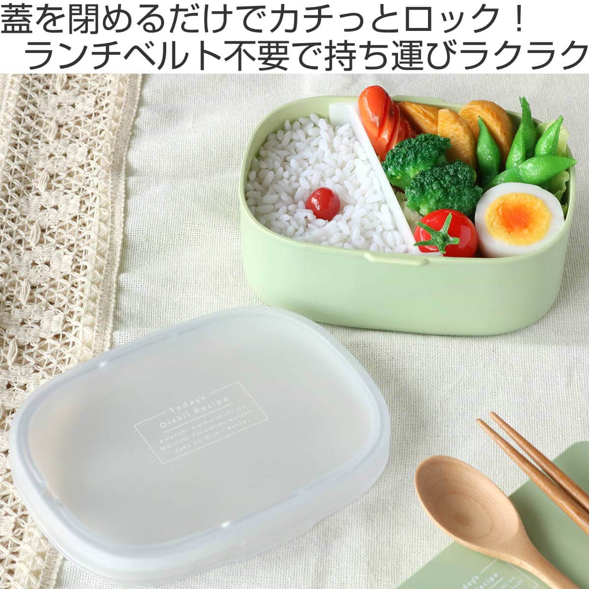 蓋を閉める時にはカチッと音がしてしっかりロックされるので、ランチベルトがいりません。本体の側面をワンタッチで押し込み、蓋をゆっくりと引き上げると蓋を開けることができます。※中身が入っている状態で、蓋部分だけを持って本体を持ち上げないで下さい。
