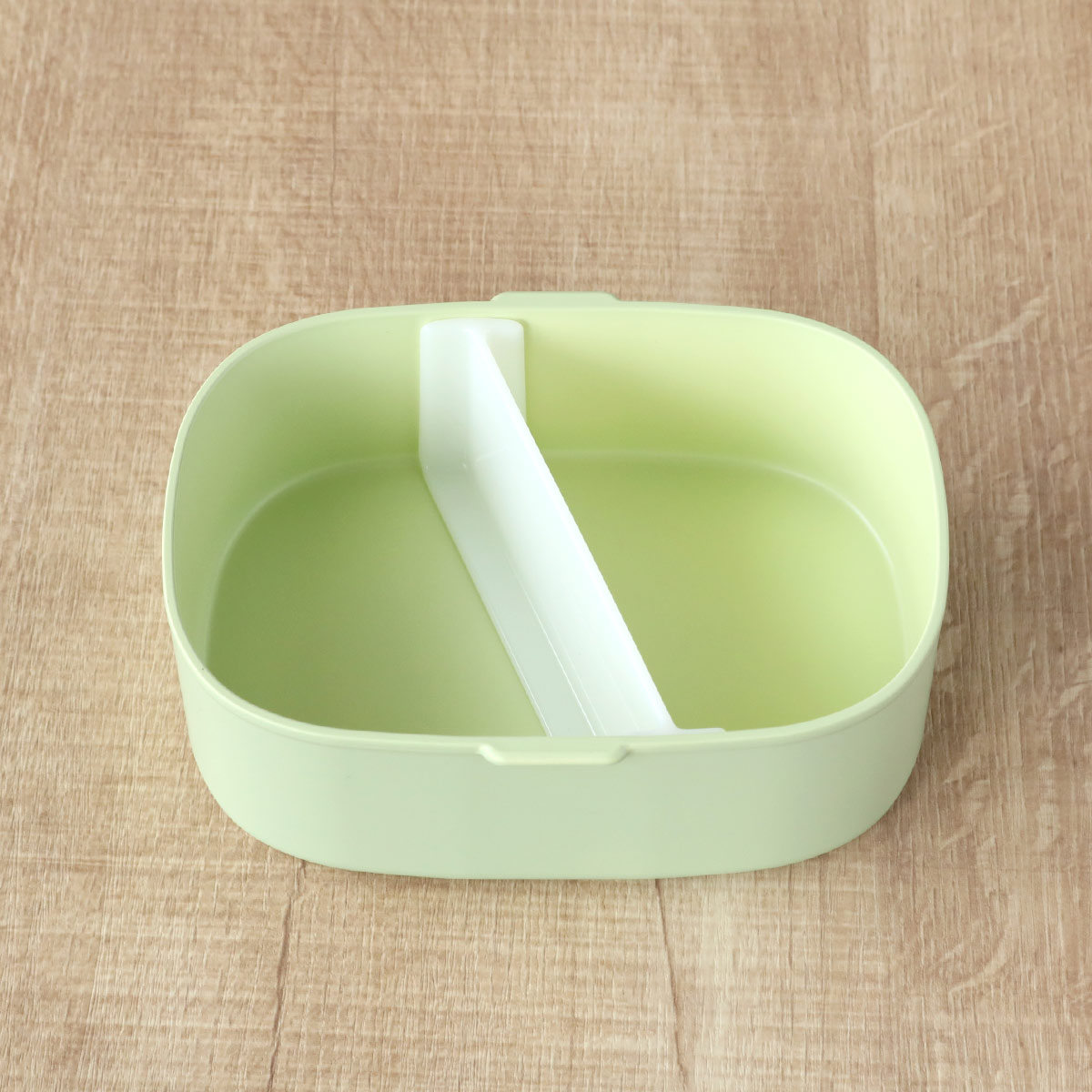 お弁当箱の中に入っている仕切りは斜めにはめることができ、左右に動かせるので、お好みの位置にすることができます。その日のおかずの量に合わせて仕切りの位置が動かせるので、「スペースが余ってしまって中身が偏ってしまう・・」なんてことも防げます。