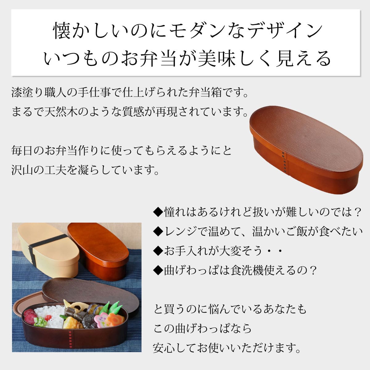 丸みのある弁当箱をしっかり固定してくれます。