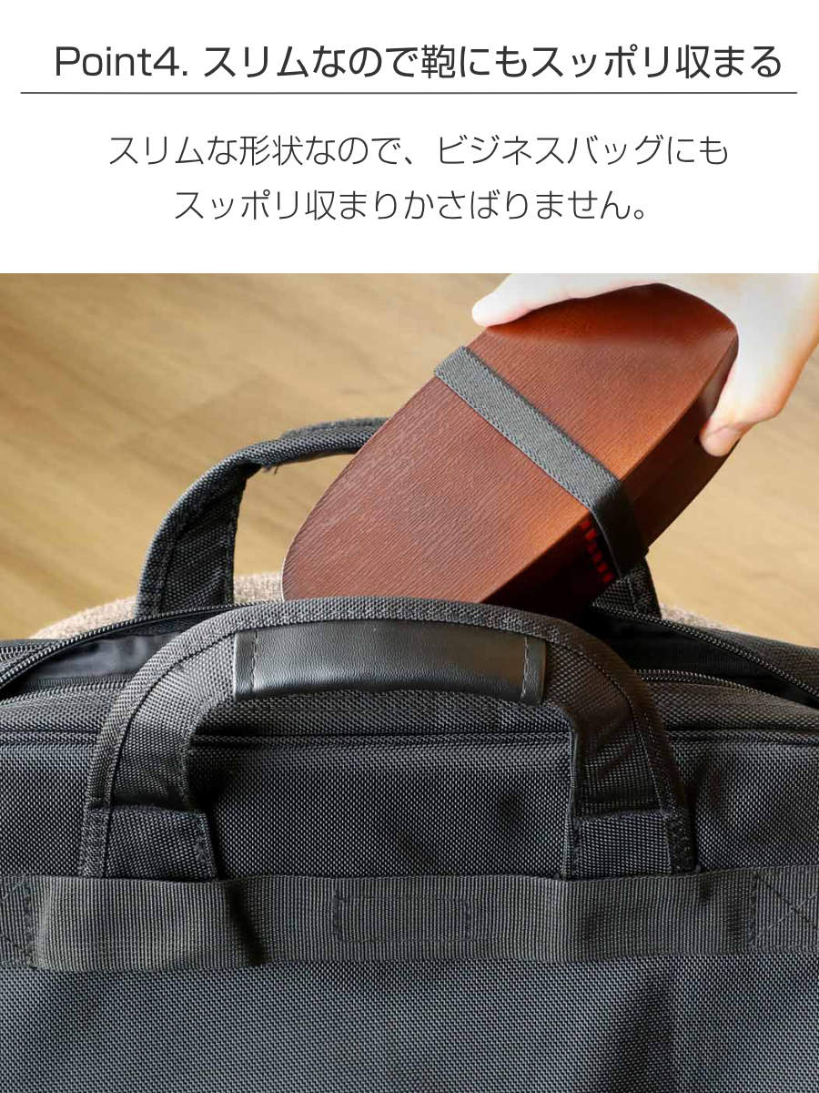 スリムな形状なので、ビジネスバッグにも