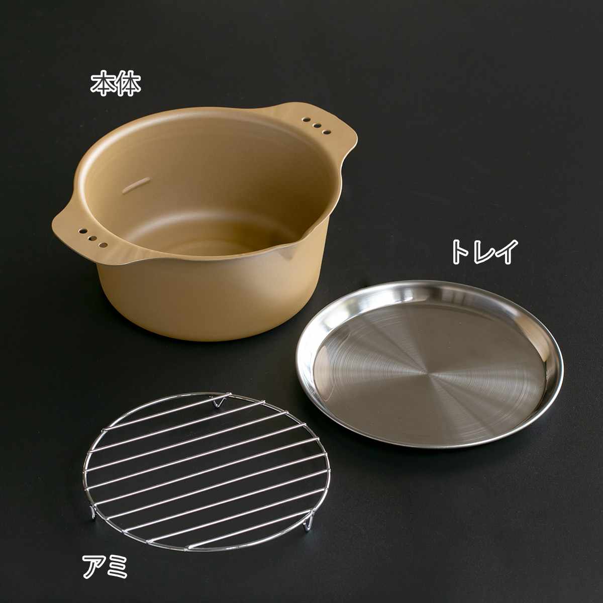 | サイズ | 外寸:約 幅22×奥行17.2×高さ8(cm) 内寸:約 幅15.8×奥行16.2×高さ7.8(cm) 本体底の厚さ:1.2mm アミ:約 幅14.7×奥行14.7×高さ1.2(cm) トレイ:約 幅16.5×奥行16.5×高さ1.2(cm) |