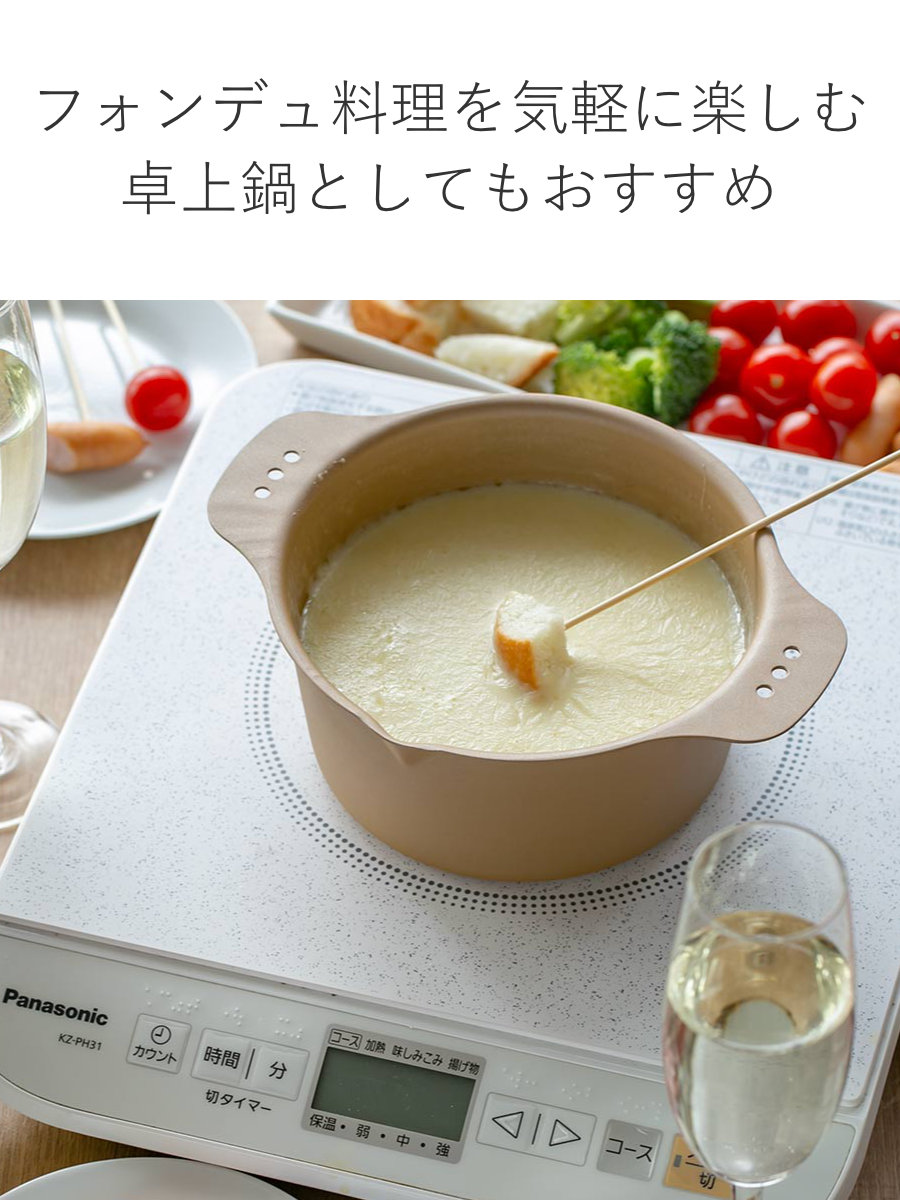 揚げ物だけでなく、卓上でチーズフォンデュやチョコレートフォンデュなども楽しめます。お鍋を囲んでいろいろなフォンデュ料理を楽しめるのでホームパーティーやおもてなしにもぴったりです。