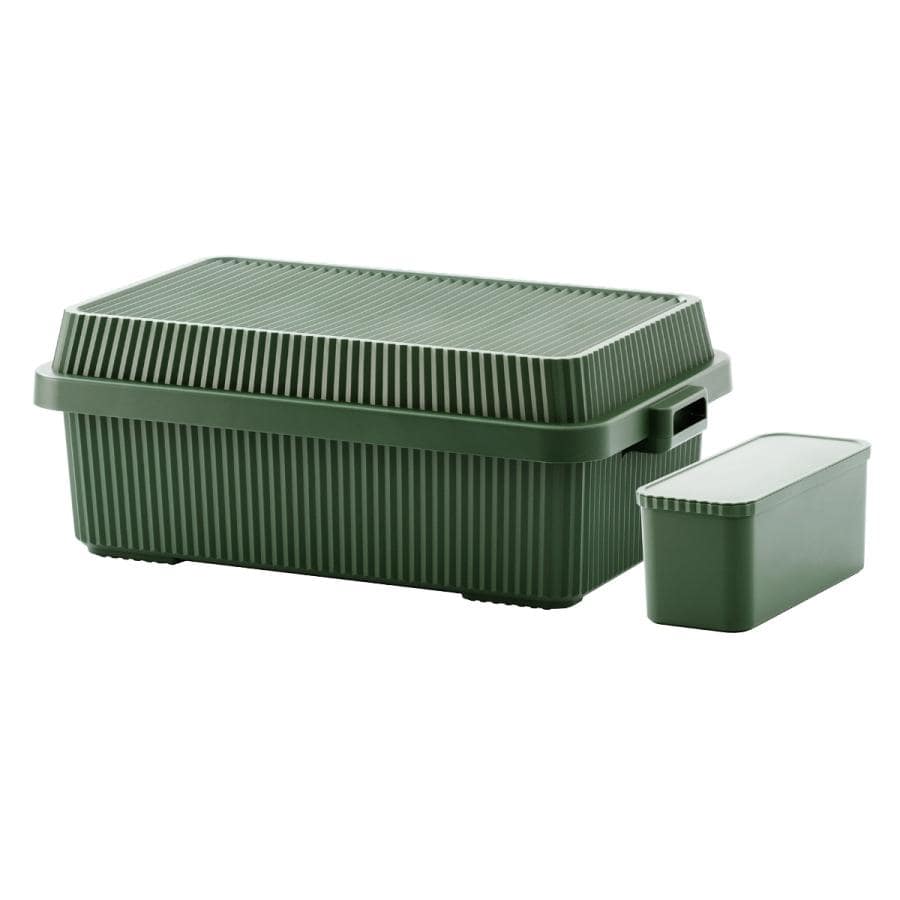 専用インナーボックスとコンテナのジグザグがぴったり噛み合うデザインです。インナーボックスが中でズレにくく、コンテナー内を仕切ることもできます。