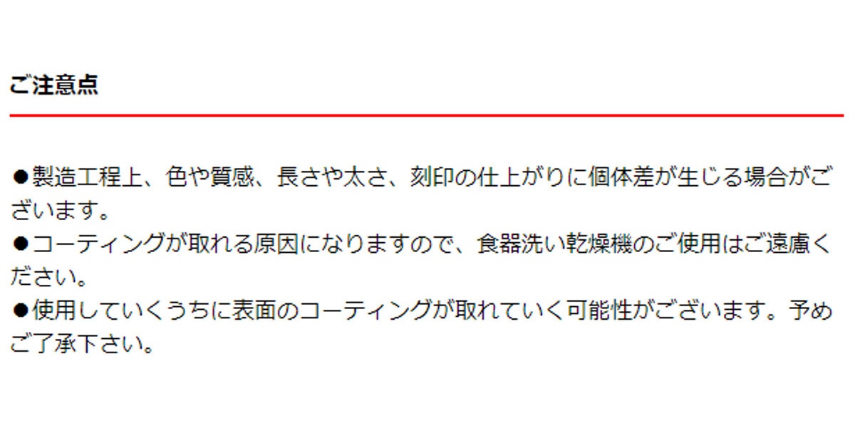 ●使用していくうちに表面のコーティングが取れていく可能性がございます。予めご了承下さい。