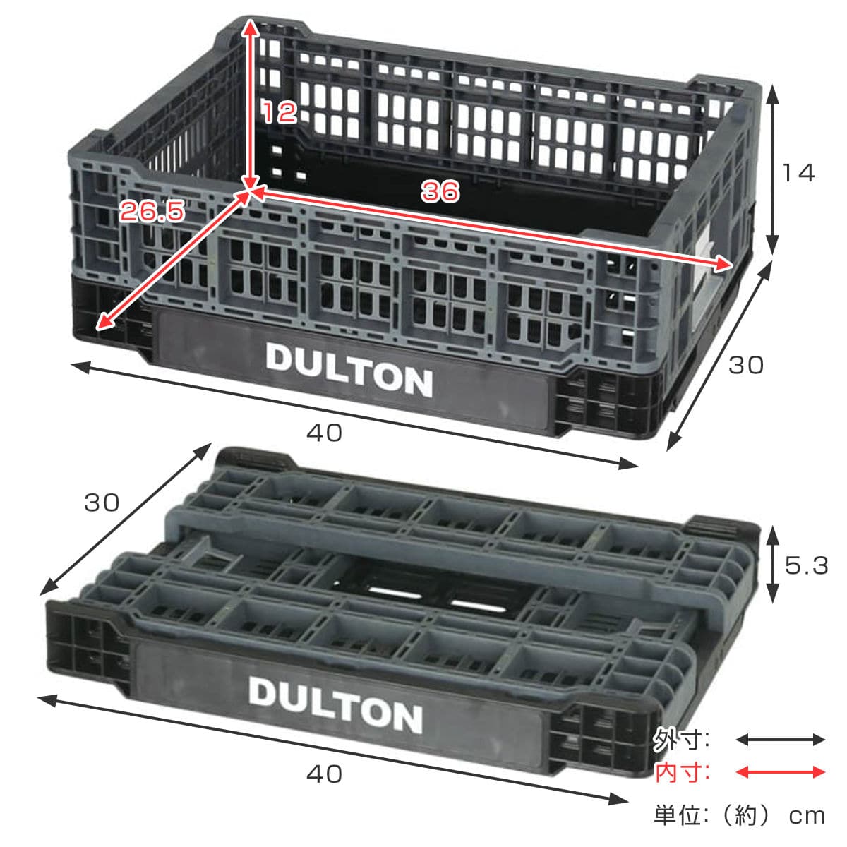| サイズ | 外寸:約 幅30×奥行40×高さ14(cm) 内寸:約 幅26.5×奥行36×高さ12(cm) 折りたたみ時:約 幅30×奥行40×高さ5.3cm |