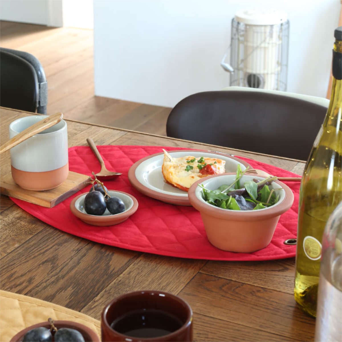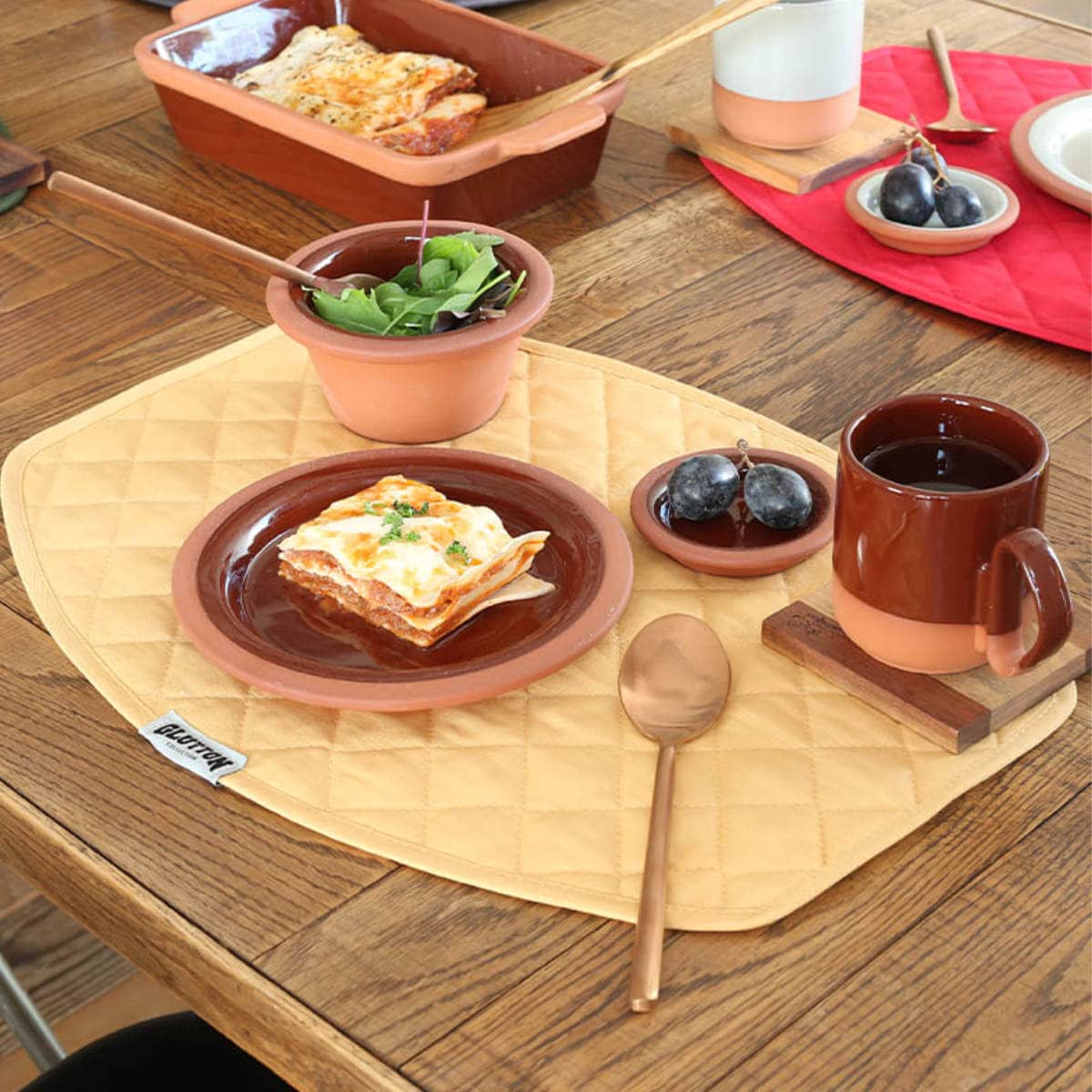 カラーバリエーション豊富な大人気GLUTTONシリーズのプレイスマットです。 キルティングの柔らかさを感じつつも、丸みを抑えた形状に仕上げることで、ハードな印象をプラスし、食卓を絶妙なバランスで賑やかにしてくれます。