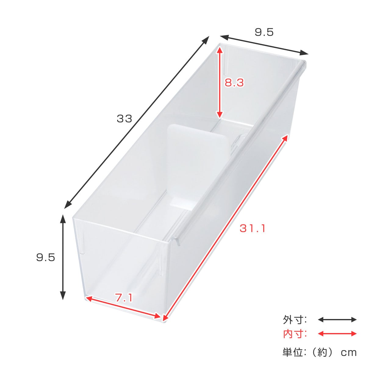 | サイズ | 外寸:約 幅9.5×奥行33×高さ9.5(cm) 内寸:約 幅7.1×奥行31.1×高さ8.3(cm) |