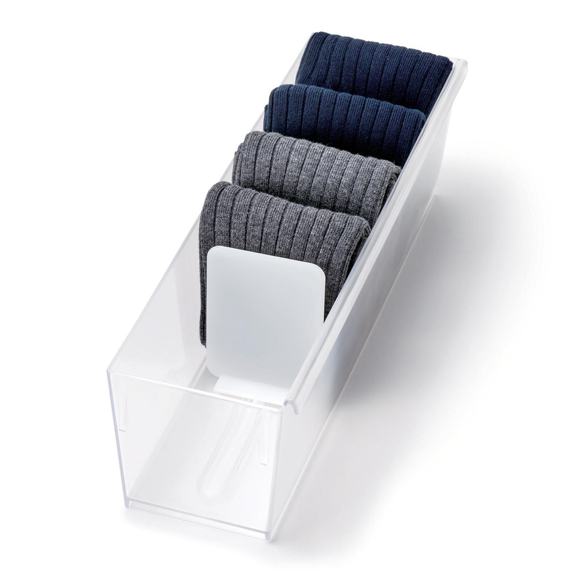 散らかりがちな衣類小物を、小分けて収納できる仕切りケースです。靴下やネクタイ、ベルト、ハンカチ等の収納に最適なサイズです。引出し内の収納物を一目でわかりやすくし、必要なものをサッと取り出せます。