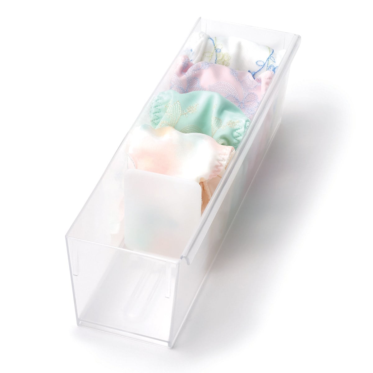 布製と違い、プラスチック製なので使用するうちにケース自体が型崩れする心配がありません。表面はツルツルしているので、レースやストッキングのような繊細な衣類も安心して収納できます。