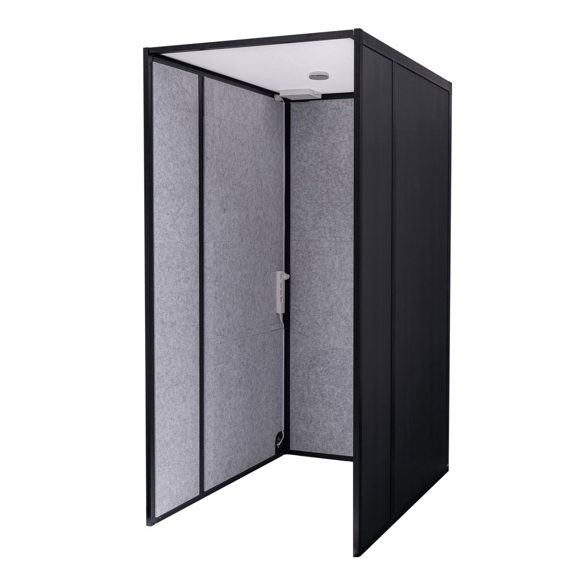 吸音ブースFは、電源タップ・換気ファン・火災報知器が付いています。お手持ちのテーブルや椅子を入れると、パソコン作業ができる1人用の個室に早変わりします。周りの雑音が気にならないので、テレワーク用個室として快適にご使用いただけます。