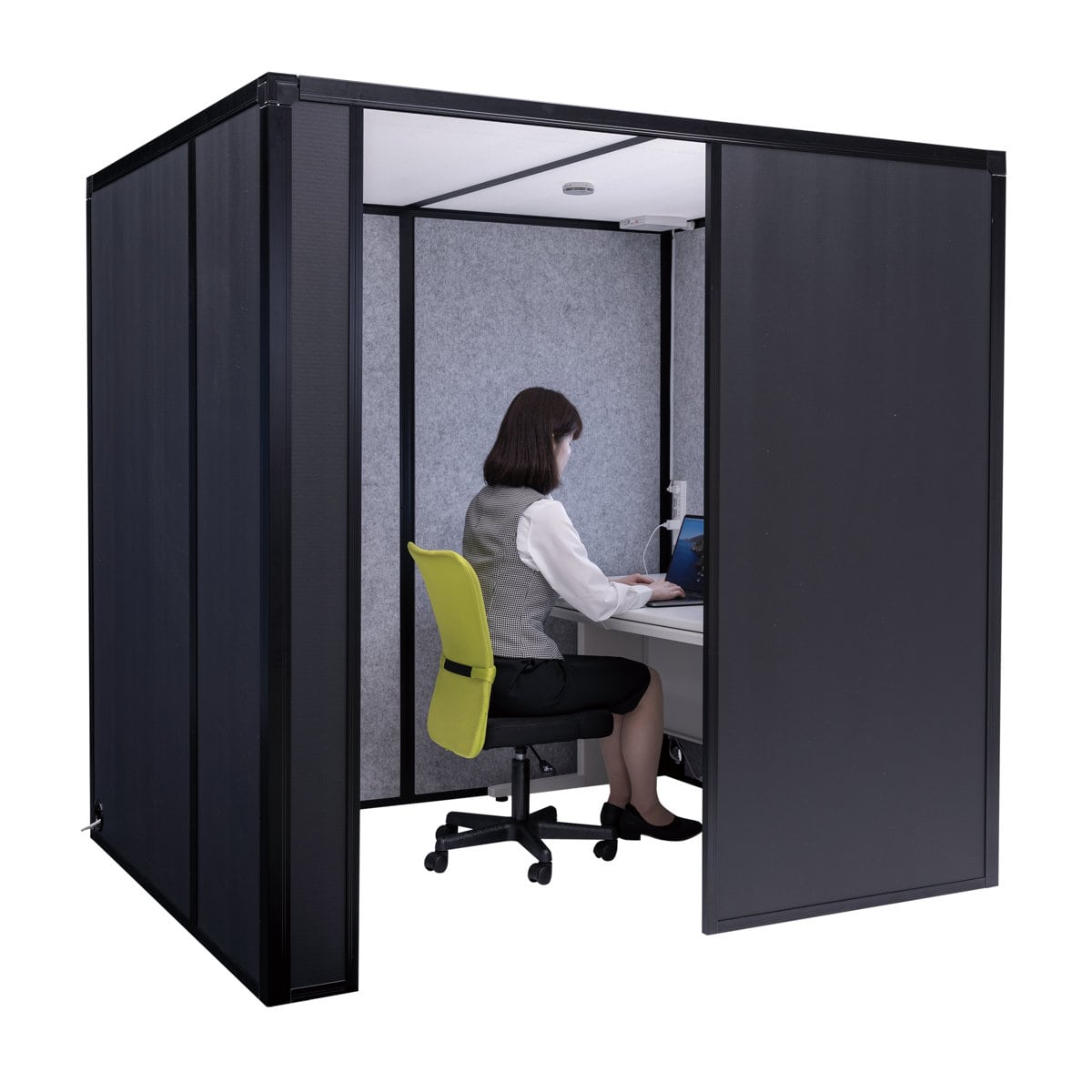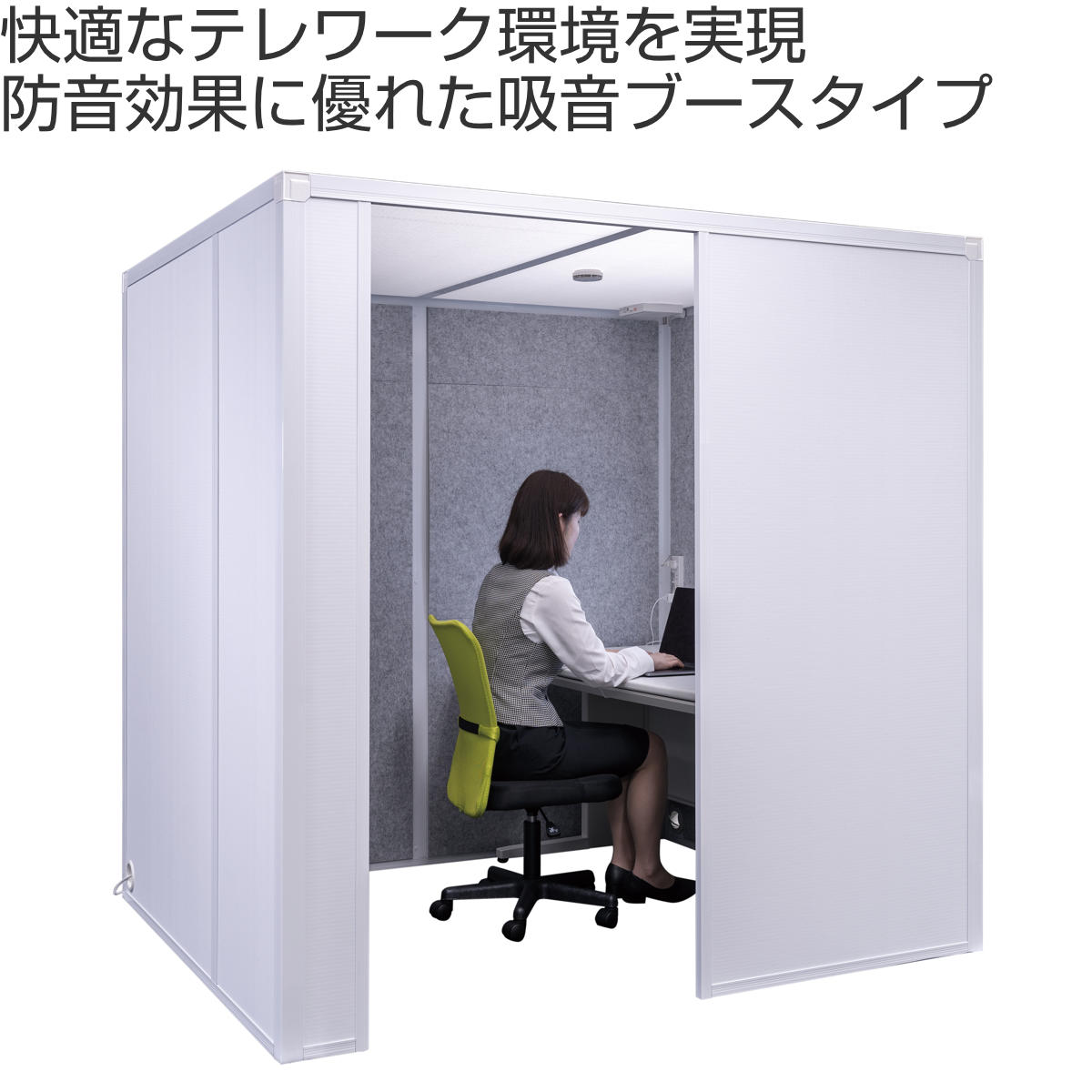 別売りのブース用ウォールとセットでご利用いただくのもおすすめです。空間を仕切るだけでなく、囲うことによりさらなる吸音効果が発揮されます。