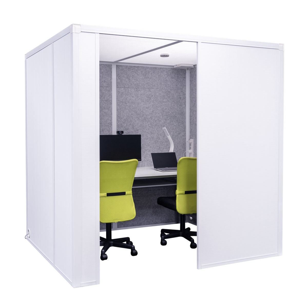 リモート会議などで周りの雑音に困ったことはありませんか?『リミュートシリーズ』の吸音ブースは、簡単組立で設置でき、優れた防音効果を発揮します。また、会議室の数が足りないなどのスペース問題も解決し、集中して仕事に取り組むスペースを確保できます。工事の必要がなく軽量素材なので、自由に移動させることもできます。