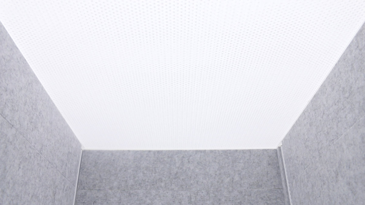 工場などの騒音改善としても使われているプロ仕様の吸音材「テクセル・セイント」を使用しているので吸音性抜群です。さらにフェルト系吸音材をプラスすることで人の声の周波数の吸音にカスタマイズしています。
