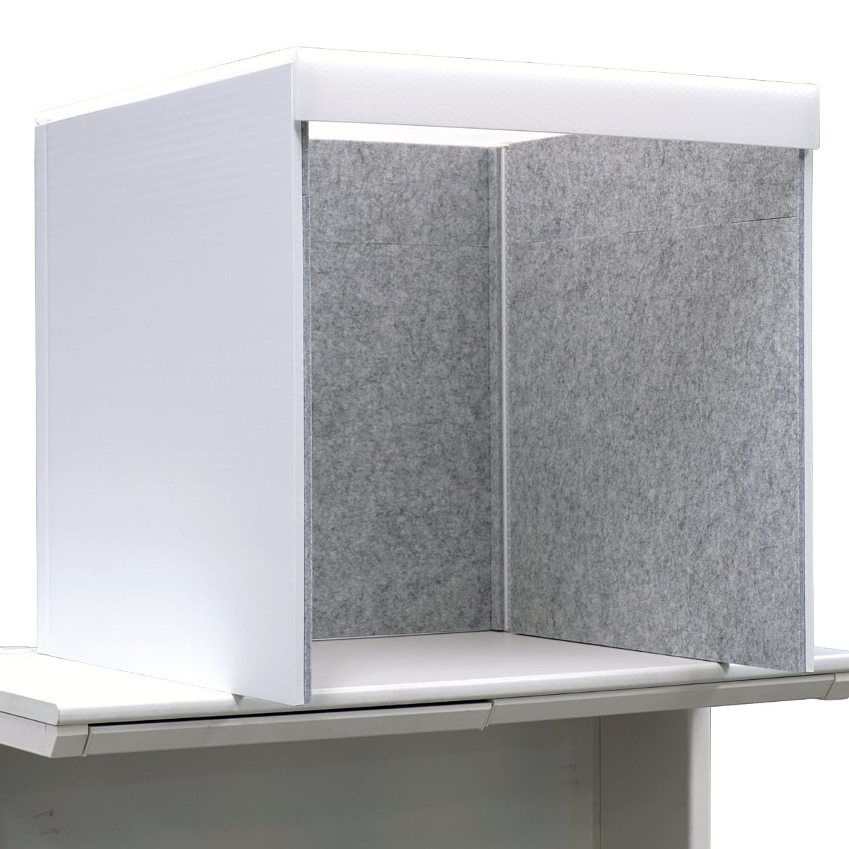折りたたみ式でコンパクトな卓上吸音ボックスは簡単に持ち運べます。設置もデスクに置くだけの手軽さなので、部屋を移動しなくても自分のデスクが個室になり、周囲を気せずにWEB会議や電話対応に集中できます。