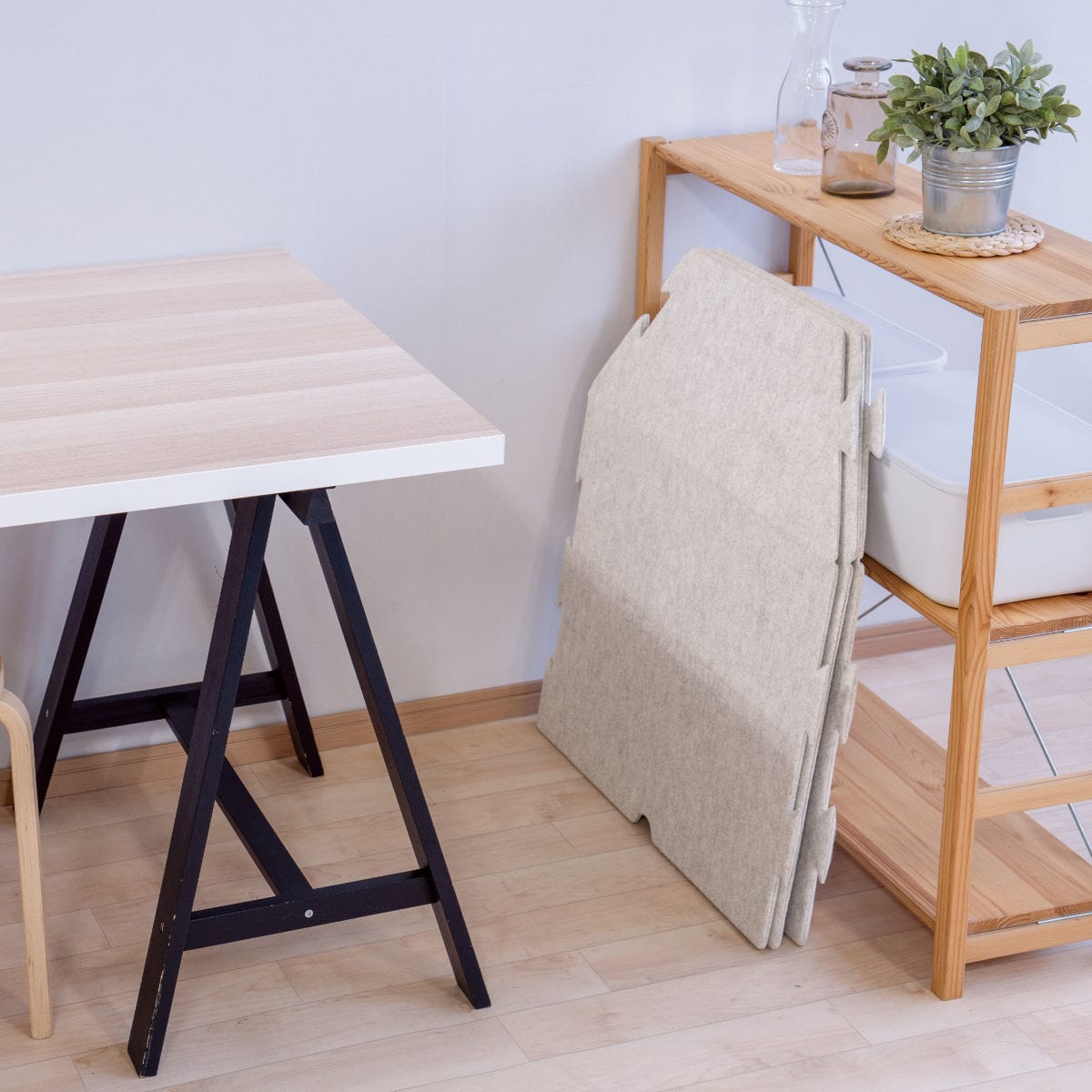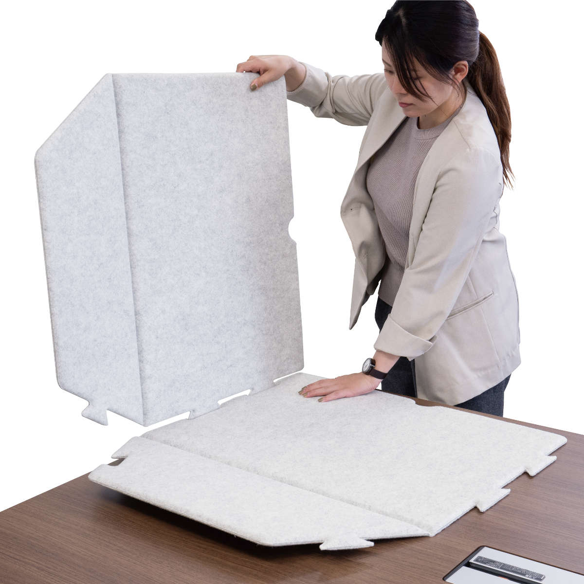 工具不要で簡単に組立てられる吸音デスクブースは持ち運びができ、どこでも手軽に個人のスペースを確保することができます。複数のブースを並べれば、より効果的な吸音スペースになり集中力もアップします。