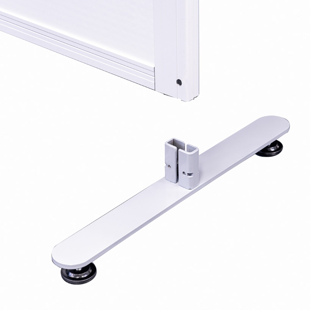 パーテーションを安定して自立させるために、安定脚が必要です。購入時にセットされているアジャスター付きエンドキャップを取り外し、安定脚に付け替えてください。
