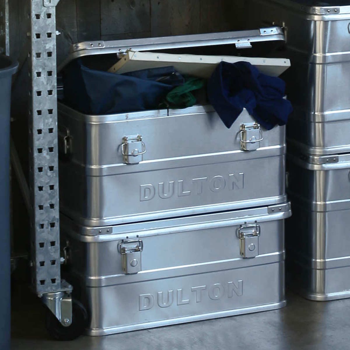 存在感抜群でインテリアとしても映える見た目のコンテナです。食品や日用品のストックを入れるなど、リビング収納として使えばお部屋の雰囲気をぐっと引き締めてくれます。キャンプ道具や園芸用品など趣味のグッズを収納するのにも最適です。