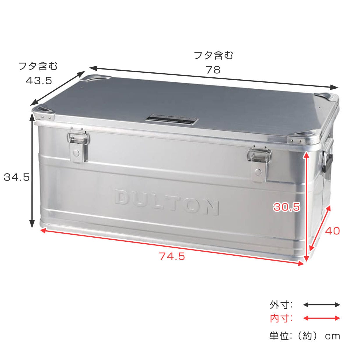| サイズ | 外寸:約 幅78×奥行43.5×高さ34.5(cm) 内寸:約 幅74.5×奥行40×高さ30.5(cm) |