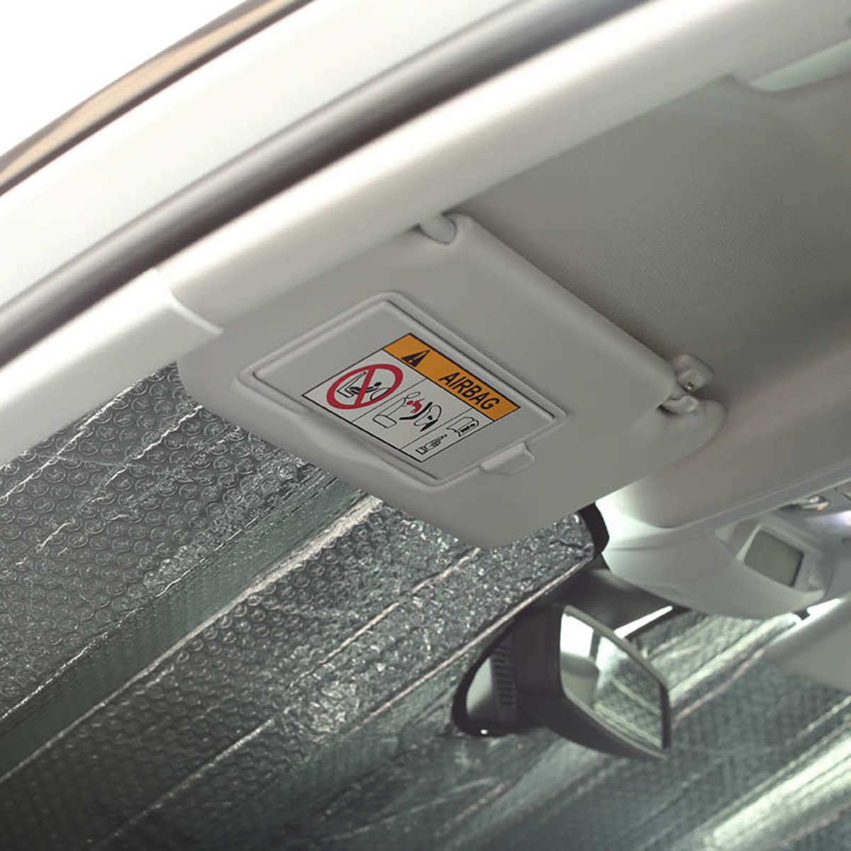 駐車中の強い日差しをさえぎり、車内温度の上昇とダッシュボードや装着品などの劣化を軽減します。また、ダッシュボードが高温になるのを軽減出来るので、エアコンで効率よく車内の温度を調節でき、ガソリン代も節約できます。紫外線は夏以外も車に影響を与えるので、通年使用をオススメします。