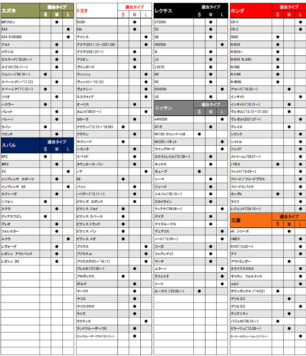 | 注意事項 | ※サイズ表はあくまでも目安です ※ご購入前にフロントガラスの実寸サイズをお確かめください |